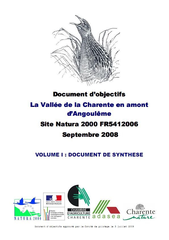 Le DOCument d'OBjectif (Docob) du site Natura 2000 "Vallée de la Charente en amont d'Angoulême" a été validé par arrêté préfectoral le 10 avril 2010.