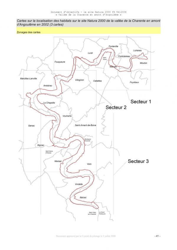 Le site Natura 2000 "Vallée de la Charente en amont d'Angoulême" présente 4 habitats d’intérêt communautaire (dont un habitat mixte 91F0/91E0).